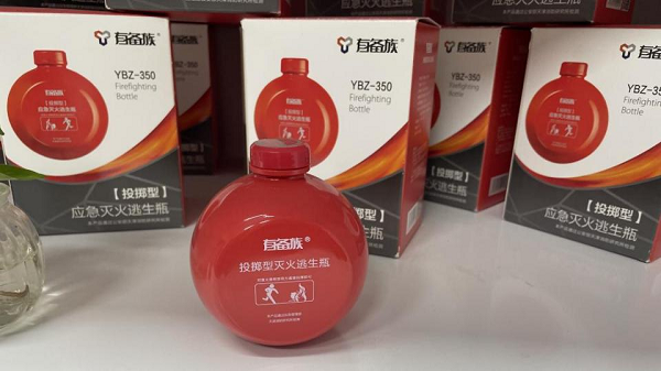 图为刘荣芬公司为残疾人研发的投掷型灭火逃生瓶。央广网记者顾炀威摄