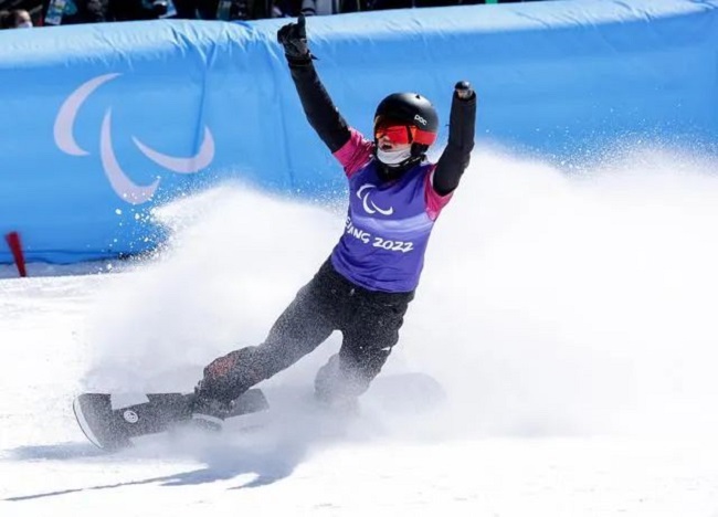 “在国家队男子UL级别,有我们河北籍运动员4人,我们4人在训练和比拼中很默契地有了一个梦想,就是不但要争金夺银,最好能让三面五星红旗同时升起。”有梦就有勇气为之奋斗,有努力就有回报,在2022年北京冬残奥会单板滑雪障碍追逐项目上,中国队包揽了金、银、铜,颁奖广场上三面中国国旗同时升起,这也是中国代表团在残奥单板滑雪男子UL级别项目上的首次突破。