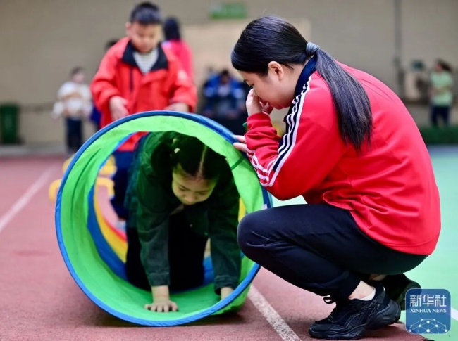 图为12月11日,在佛山市康复实验学校,一名教师(右)辅助学生进行运动康复。新华社记者 吴青昊 摄