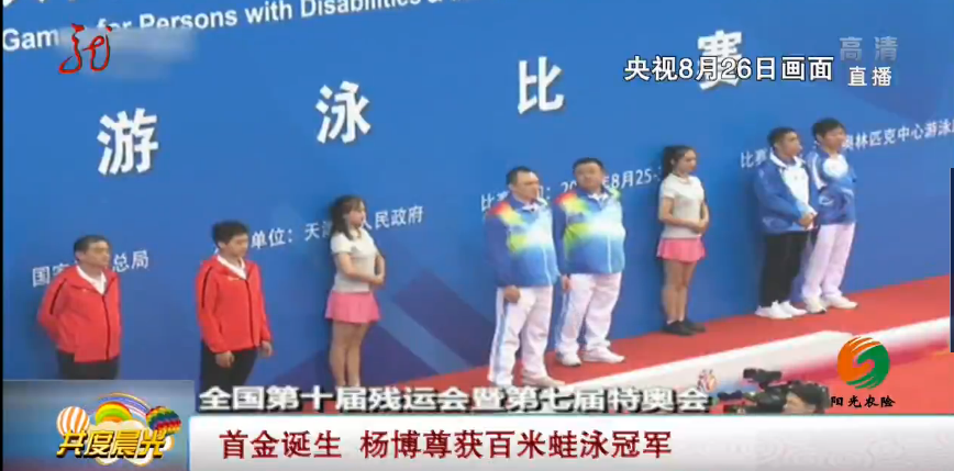 中央电视台《共度晨光》全国第十届残运会暨第七届特奥会 首金诞生 杨博尊获百米蛙泳冠军
