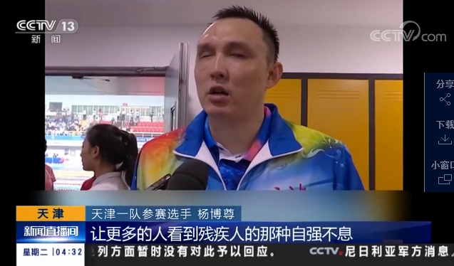 中央电视台《新闻直播间》关注全国第十届残运会暨第七届特奥会 杨博尊夺得首枚金牌